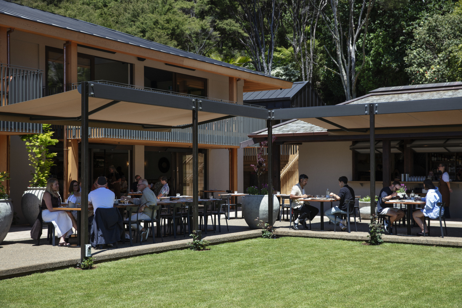 With a large courtyard and an outdoor pizza kitchen and bar, it's a space to relax, eat well, and feel at home.